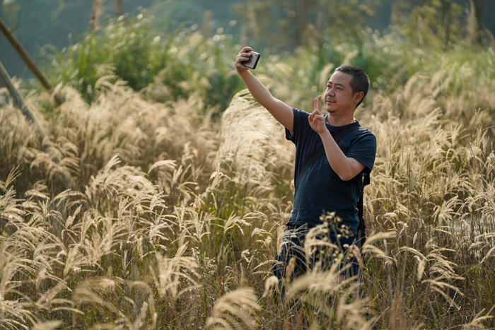 一名游客在九龙坡区中梁山一个矿坑公园内自拍 刘潺 摄