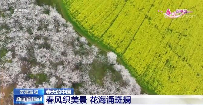 这几天,在安徽省宣城市郎溪十字镇新和村,上千亩樱花竞相绽放。从高空俯瞰,连片的樱花如云似霞,蔚为壮观。不只是樱花,金灿灿的油菜花也已盛放,与碧绿的池水、粉色的樱花构成了一幅春日画卷。近年来,当地围绕万亩茶海、千亩樱花,探索以“美丽经济”助力乡村振兴。通过基础设施建设,打造美丽公路,改善村民的生活环境,切实提高村民收入。