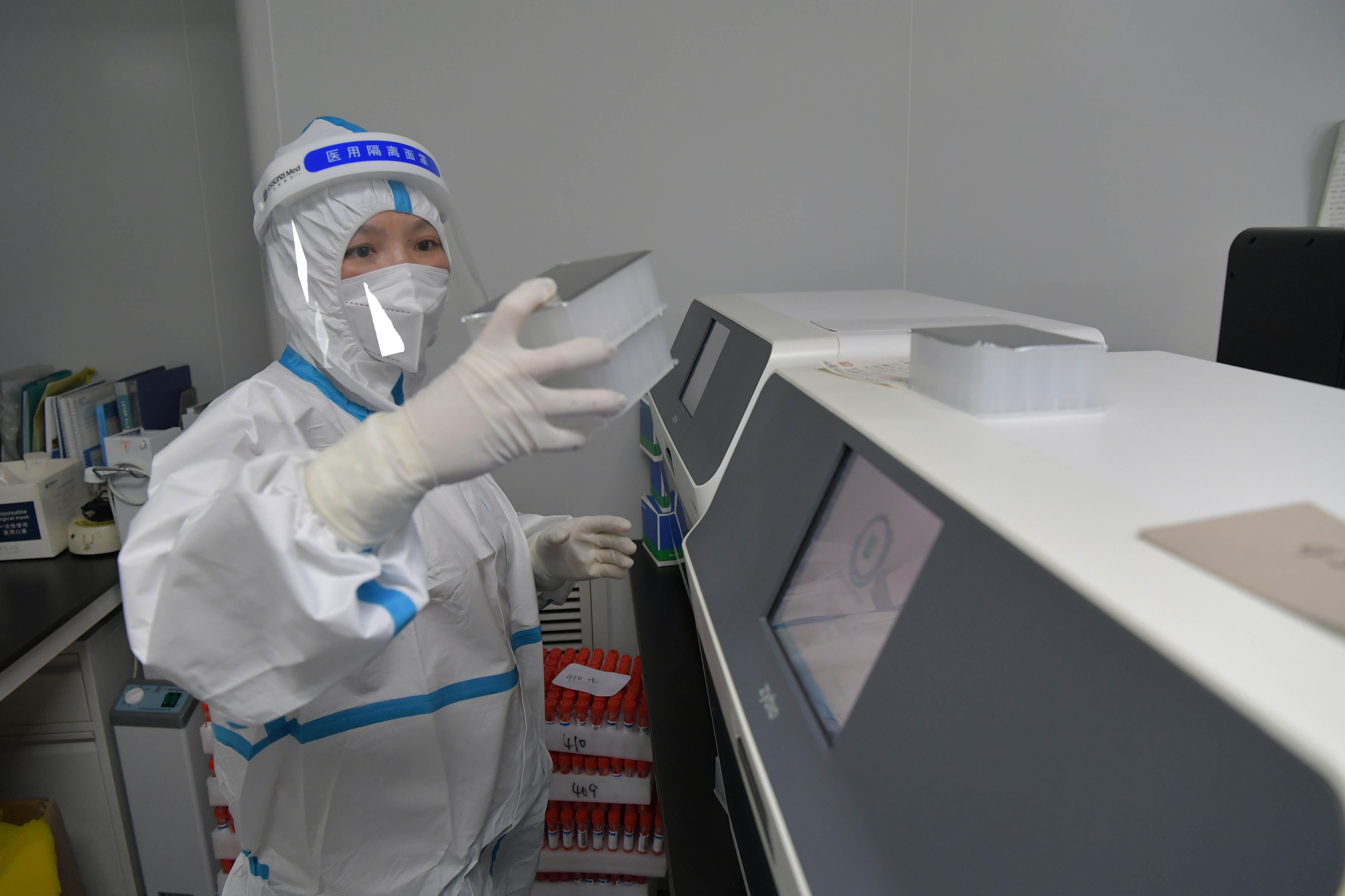 新华社照片,南昌,2022年3月24日 核酸检测室里的“缉毒人” 在南昌大学二附院医学检验中心核酸检测实验室,核酸检测员在使用设备对标本提取核酸(3月23日摄)。 在抗击新冠肺炎疫情最前沿,核酸检测员是近距离与病毒战斗的幕后英雄,检测室里的“缉毒人”。 从3月17日开始,江西南昌大学二附院28名经验丰富的检测员组成核酸检测队,每天分3班不停歇地进行核酸检测。核酸检测工作是一项技术要求高、风险大、手工操作环节多的精细活,每一个环节都要求严谨细致,全神贯注,不能出现丝毫差错,队员们严格按照操作规范,寻找病毒的“蛛丝马迹”。截至3月22日,他们共完成南昌市第一、二、三轮核酸检测标本4.5万余份,发出核酸检测报告48万余份。 新华社记者 彭昭之 摄