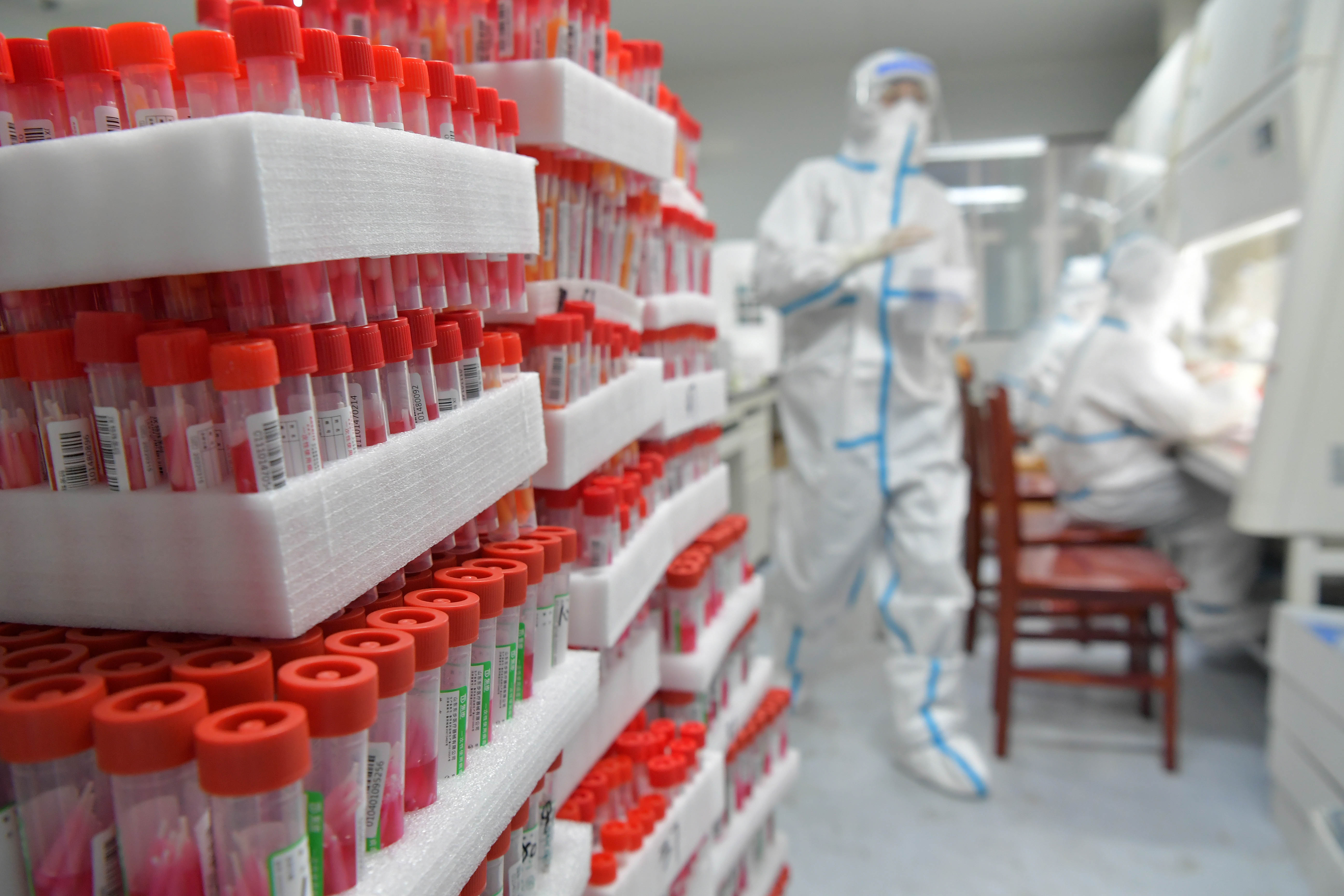 新华社照片,南昌,2022年3月24日 核酸检测室里的“缉毒人” 送来的标本叠放在南昌大学二附院医学检验中心核酸检测实验室里(3月23日摄)。 在抗击新冠肺炎疫情最前沿,核酸检测员是近距离与病毒战斗的幕后英雄,检测室里的“缉毒人”。 从3月17日开始,江西南昌大学二附院28名经验丰富的检测员组成核酸检测队,每天分3班不停歇地进行核酸检测。核酸检测工作是一项技术要求高、风险大、手工操作环节多的精细活,每一个环节都要求严谨细致,全神贯注,不能出现丝毫差错,队员们严格按照操作规范,寻找病毒的“蛛丝马迹”。截至3月22日,他们共完成南昌市第一、二、三轮核酸检测标本4.5万余份,发出核酸检测报告48万余份。 新华社记者 彭昭之 摄