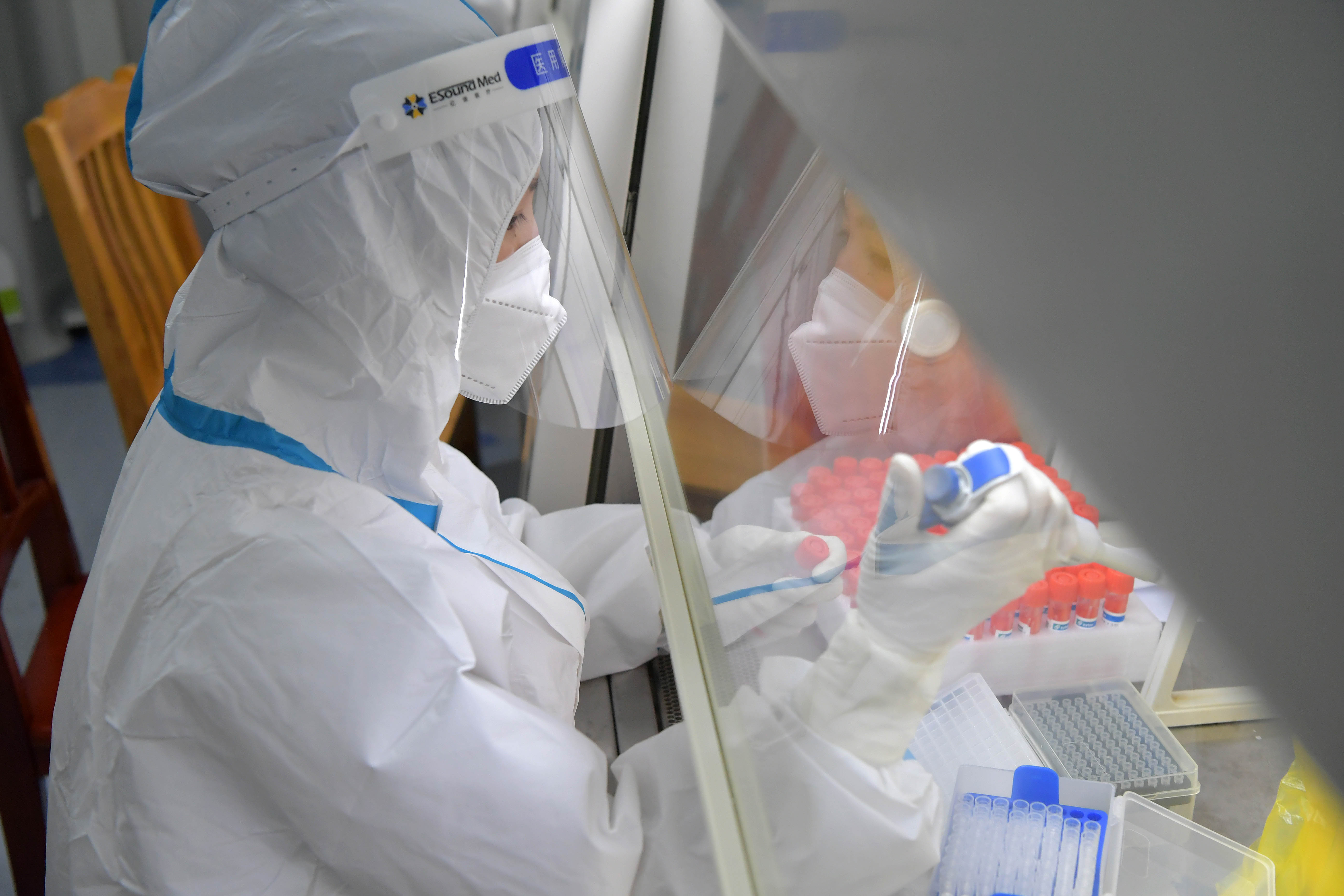 新华社照片,南昌,2022年3月24日 核酸检测室里的“缉毒人” 在南昌大学二附院医学检验中心核酸检测实验室,核酸检测员在对送来的标本进行检测(3月23日摄)。 在抗击新冠肺炎疫情最前沿,核酸检测员是近距离与病毒战斗的幕后英雄,检测室里的“缉毒人”。 从3月17日开始,江西南昌大学二附院28名经验丰富的检测员组成核酸检测队,每天分3班不停歇地进行核酸检测。核酸检测工作是一项技术要求高、风险大、手工操作环节多的精细活,每一个环节都要求严谨细致,全神贯注,不能出现丝毫差错,队员们严格按照操作规范,寻找病毒的“蛛丝马迹”。截至3月22日,他们共完成南昌市第一、二、三轮核酸检测标本4.5万余份,发出核酸检测报告48万余份。 新华社记者 彭昭之 摄