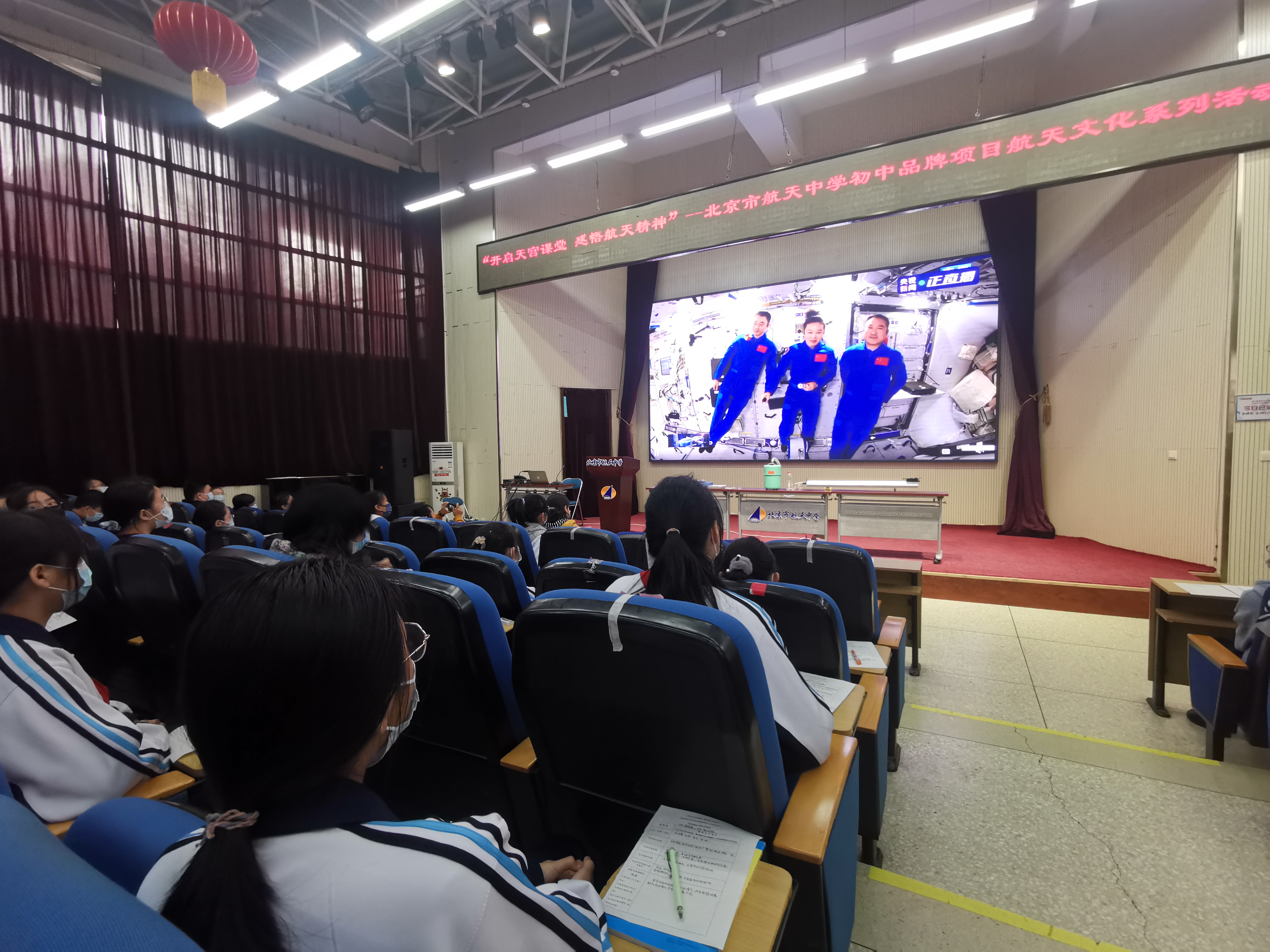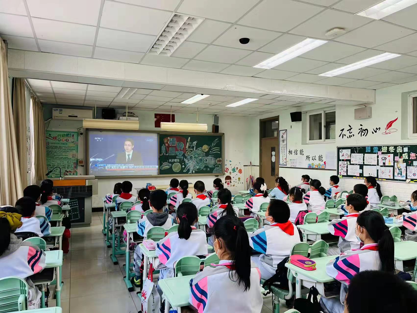 当日下午,北京多所学校师生通过电视直播观看了“天空课堂”。