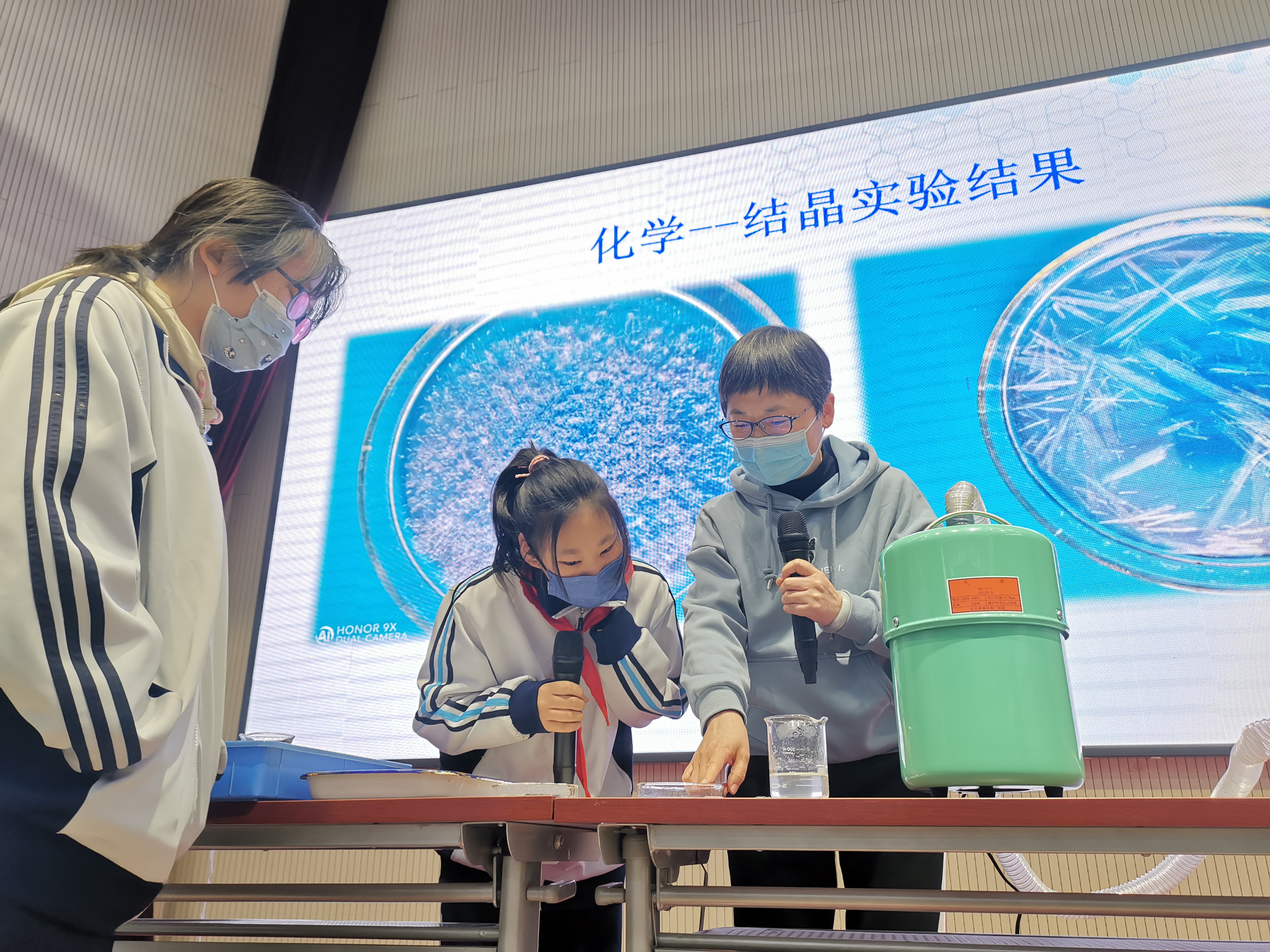 北京航天中学师生在太空授课结束后进行对比实验。新华社记者 赵琬微 摄