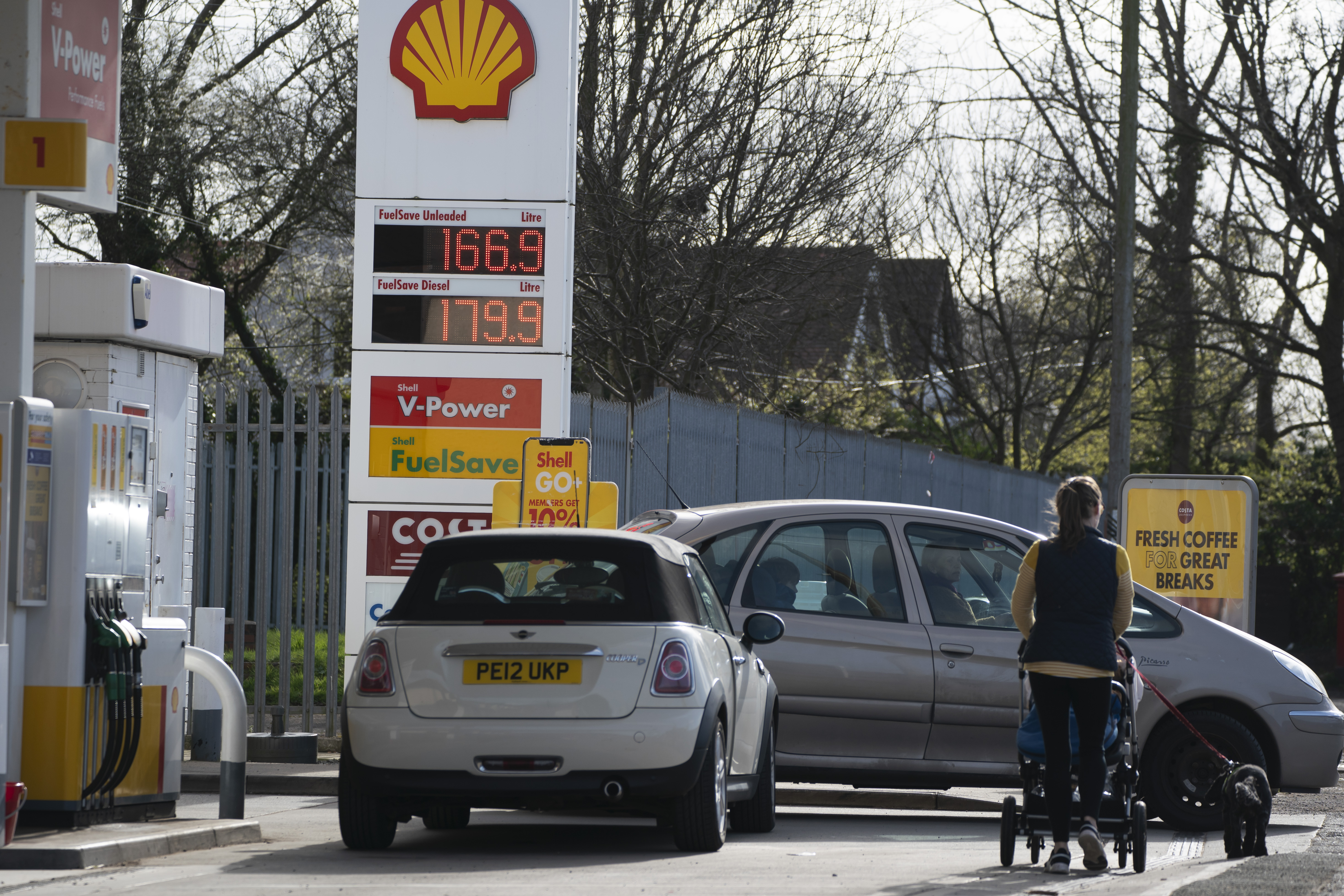 新华社照片,切希尔(英国),2022年3月24日 (国际)(4)欧洲经济民生受创 3月17日,车辆停在英国切希尔的一处加油站前。 加油站排起长队,运输公司经营困难,上班族拼车通勤……随着西方不断升级对俄制裁,这些情形在欧洲多国出现。能源价格上涨也波及食品、日用品等与生活息息相关的领域。 新华社发(乔恩·休珀摄)