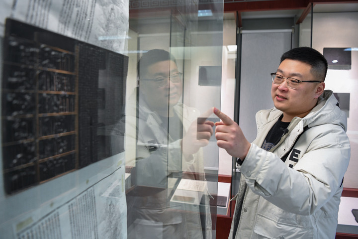 王康在金陵刻经处经版楼内参观经版(2月21日摄)。图片均由新华每日电讯记者 李博 摄