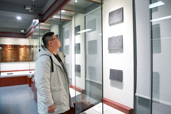王康在金陵刻经处经版楼内参观经版(2月21日摄)。