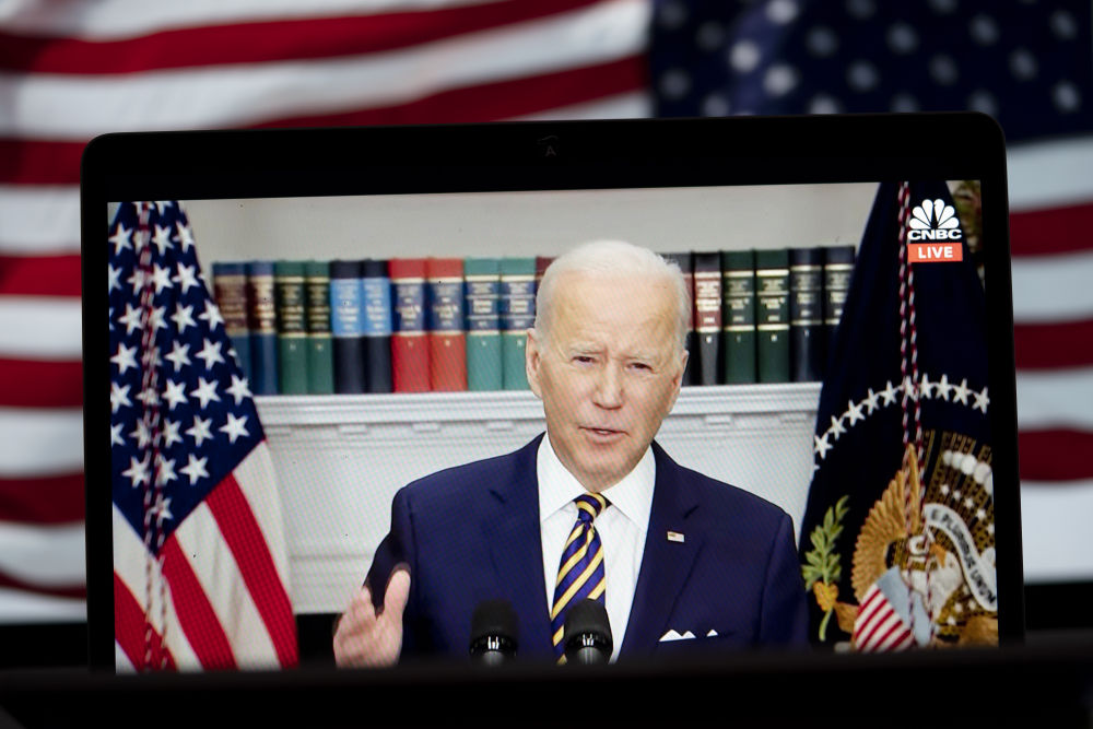 美国总统拜登3月8日宣布,美国将对俄实施能源禁运,停止从俄进口石油、天然气和煤炭。这是当天拍摄的视频画面。新华社记者刘杰摄