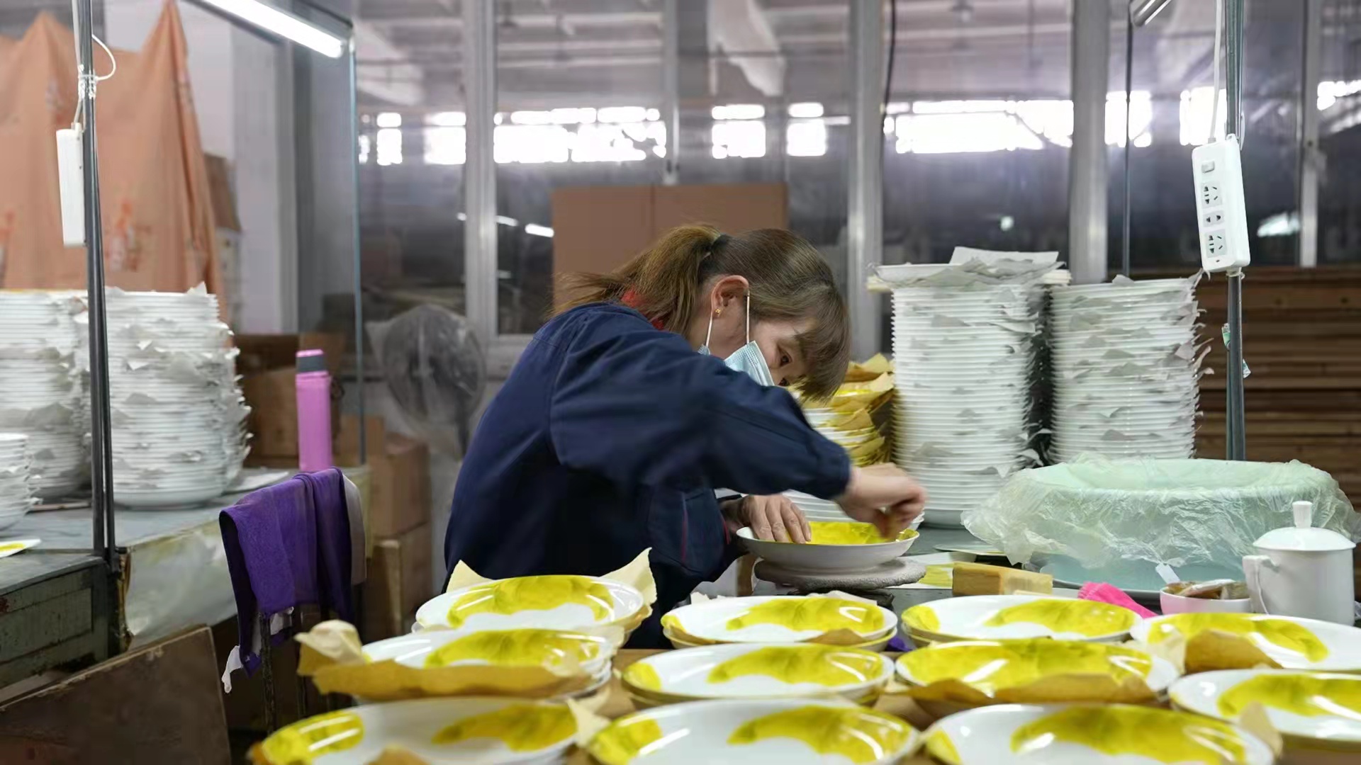 华光国瓷的职工正在生产车间里工作。(受访者供图)