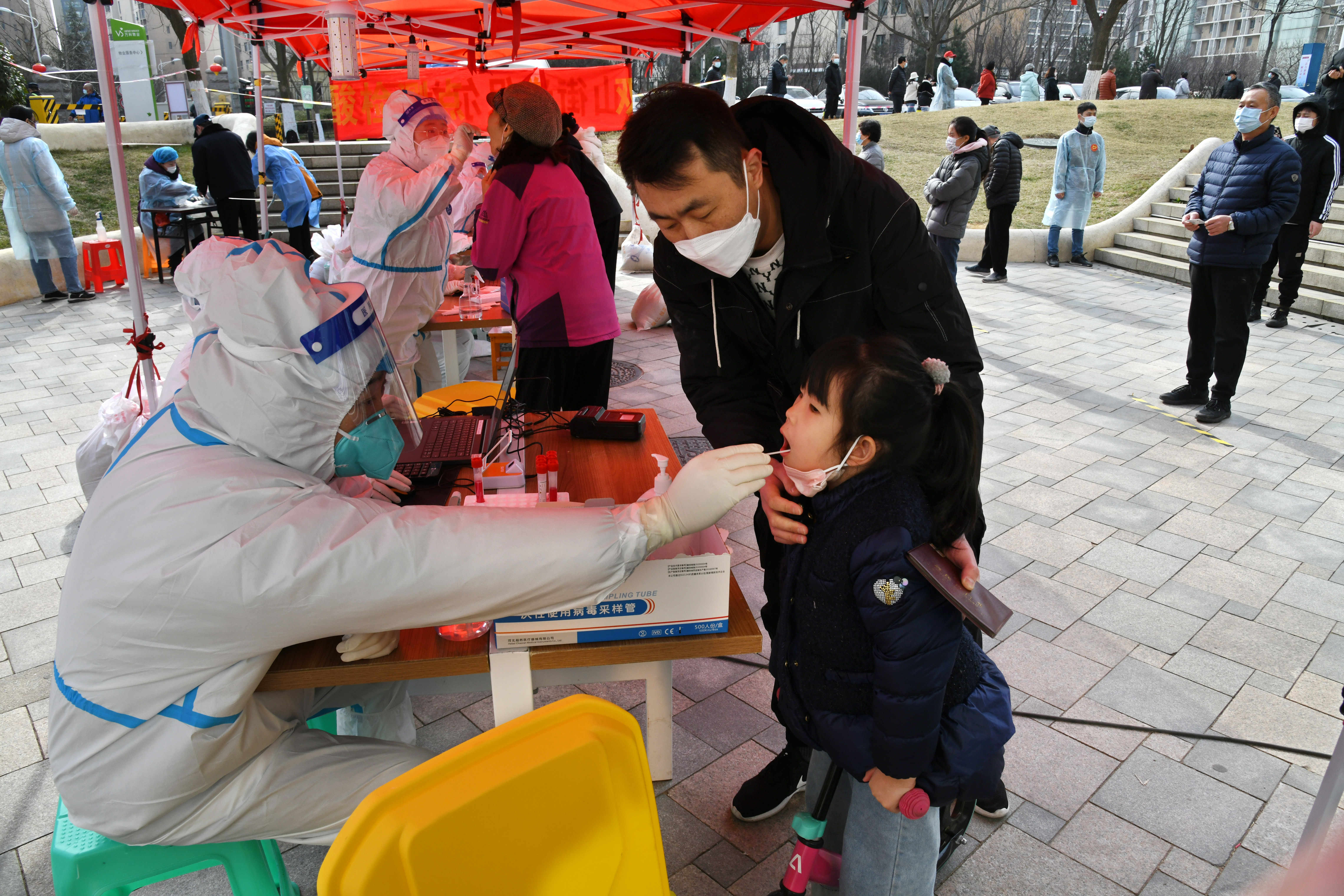 3月22日,市民在青岛市北区一核酸检测点参加第四轮采样。新华社记者 李紫恒 摄