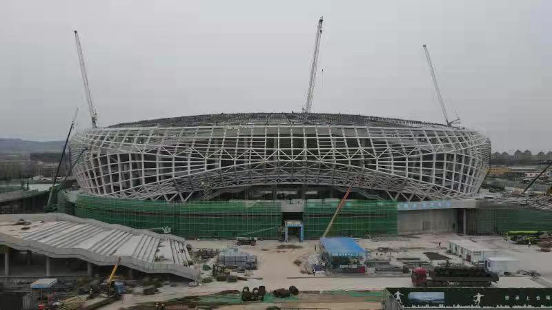 “在保证疫情防控工作的前提下,我们主体钢结构的施工已全部完成。”刘腾说,当前项目已全面开展装饰装修阶段各项施工任务,主场馆室内粗装也基本完成,目前正在进行机电综合管线施工、装修样板等。