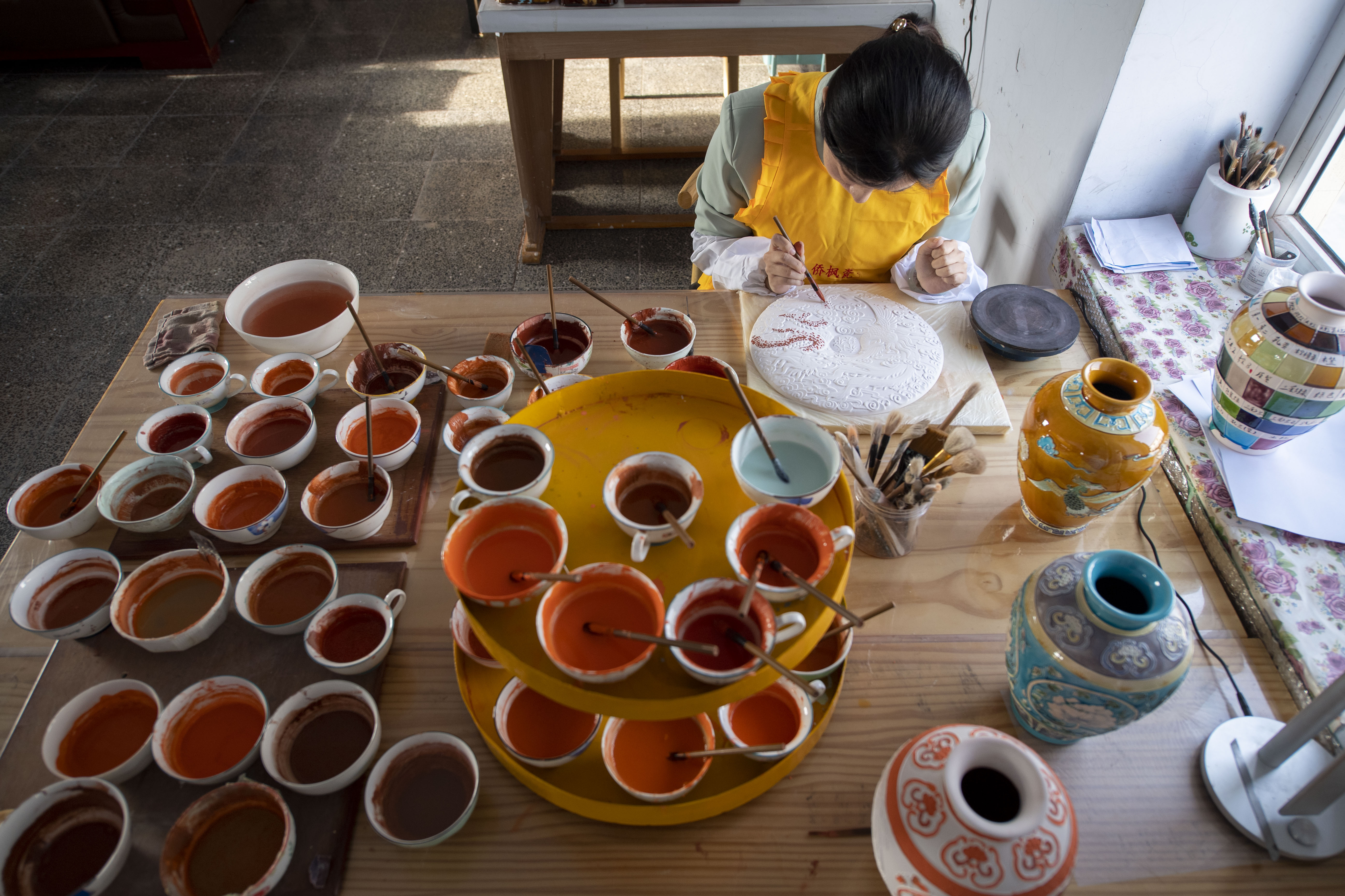 新华社照片,阳城(山西),2022年3月24日 重焕光彩的珐华技艺 3月23日,在山西省阳城县沙坡村,乔琳在制作珐华。 珐华,又名法花、法华,是集雕塑、绘画等多种艺术于一身的一种彩釉器,曾在山西东南部地区广为盛行。制作珐华需经过选料、捏制、上釉、釉烧等数十道工序,纷繁复杂。 “90后”女孩乔琳是山西省级非物质文化遗产乔氏“法花”陶瓷传统手工技艺的第二十九代传承人。2015年,留学归来的她回到家乡山西省晋城市阳城县,从父辈手中接过了珐华传统制作技艺。面对产品滞销的困境,乔琳对珐华的釉色进行创新,对上面的图案和内容进行调整,赋予珐华更多时代气息。改良创新后的珐华因为设计感强、釉色特别、贴近潮流,受到消费者青睐。 随着市场订单越来越多,乔琳也不断扩大生产规模,吸纳了不少周边村民在家门口就业增收。乔琳说,“从小看着长辈制作珐华,它已经成为我生命的一部分。”乔琳希望通过自己的努力,让古老的珐华技艺重新焕发生命力。 新华社记者 杨晨光 摄