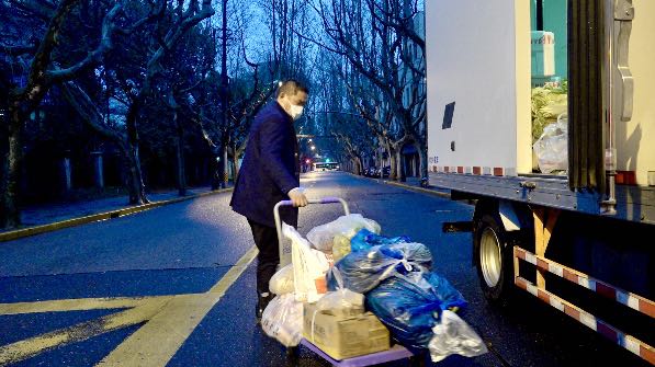 凌晨4时,短暂休整后,徐进学和他的同事们又出发了,这次,他们分两路,徐进学将蔬果运送到了部分企业、养老院和直接面向消费者的平价菜市场;同事则前往封控小区,赶在吃饭前,将这些生活必需品,交给社区“大白”们手中。