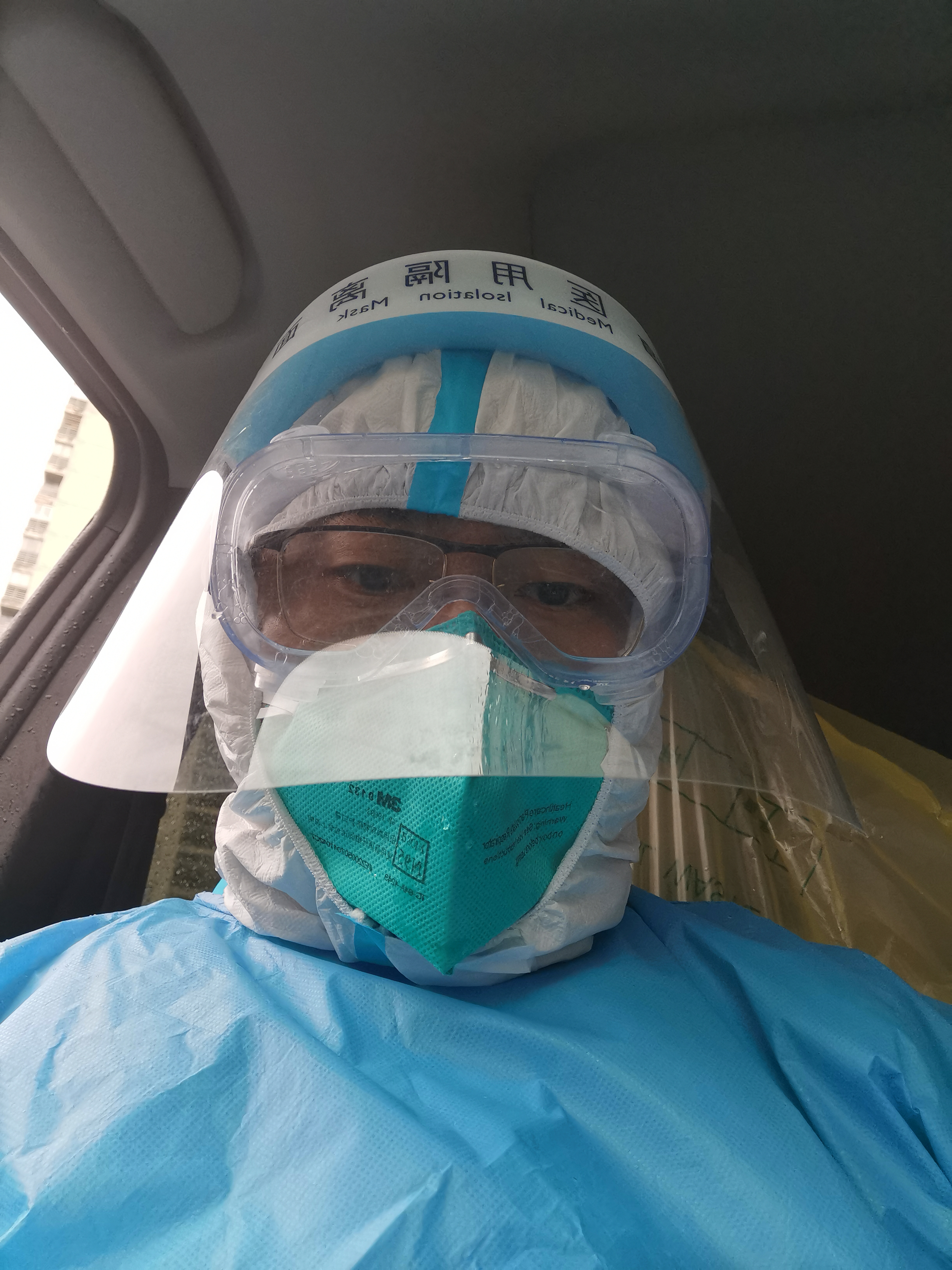 在完成一上午的采样后,他马不停蹄,又将样本送到了杨浦区中心医院。回到单位,对车辆进行严格消杀,再到指定地点脱下防护服,已经是下午2点。