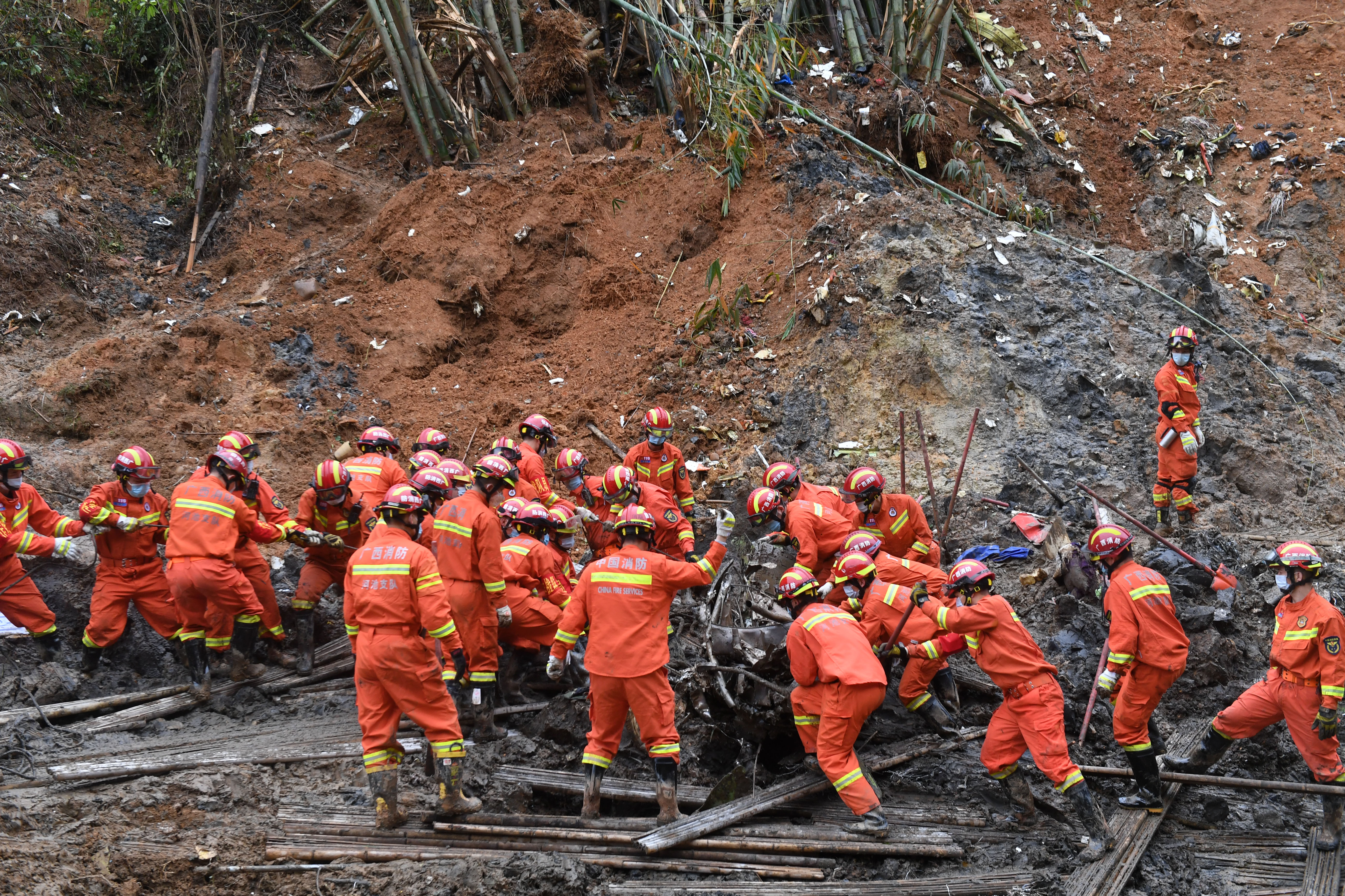 新华社照片,藤县(广西),2022年3月24日 事故核心现场搜索工作继续进行 3月24日,搜救人员在事故核心现场继续进行搜索工作。 3月24日,藤县空难搜寻工作持续展开。搜救人员在广西梧州藤县事故核心区继续搜寻失事飞机的另一个飞行数据记录仪(黑匣子)和相关残骸。 新华社记者 陆波岸 摄