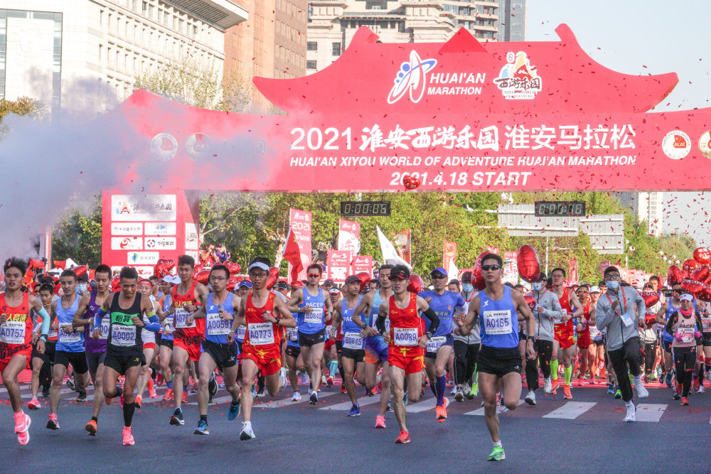 2021年4月18日,2021年淮安马拉松赛在江苏省淮安市举行。新华社记者杨磊摄