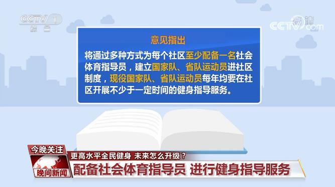 意见指出,将通过多种方式为每个社区至少配备1名社会体育指导员,建立国家队、省队运动员进社区制度,现役国家队、省队运动员每年均要在社区开展不少于一定时间的健身指导服务。这些社会体育指导员从哪来呢?专家介绍,截至2020年底,我国有260万名注册的社会体育指导员,主要来源于退役运动员、高校毕业生和体育爱好者。
