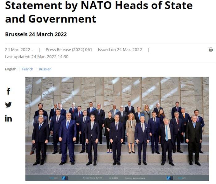 中新网3月24日电 当地时间24日,北约成员国在比利时布鲁塞尔举行峰会,主要就俄乌局势进行了讨论。会后的联合声明指出,北约将对乌克兰提供进一步援助,并计划在东欧多国增兵。