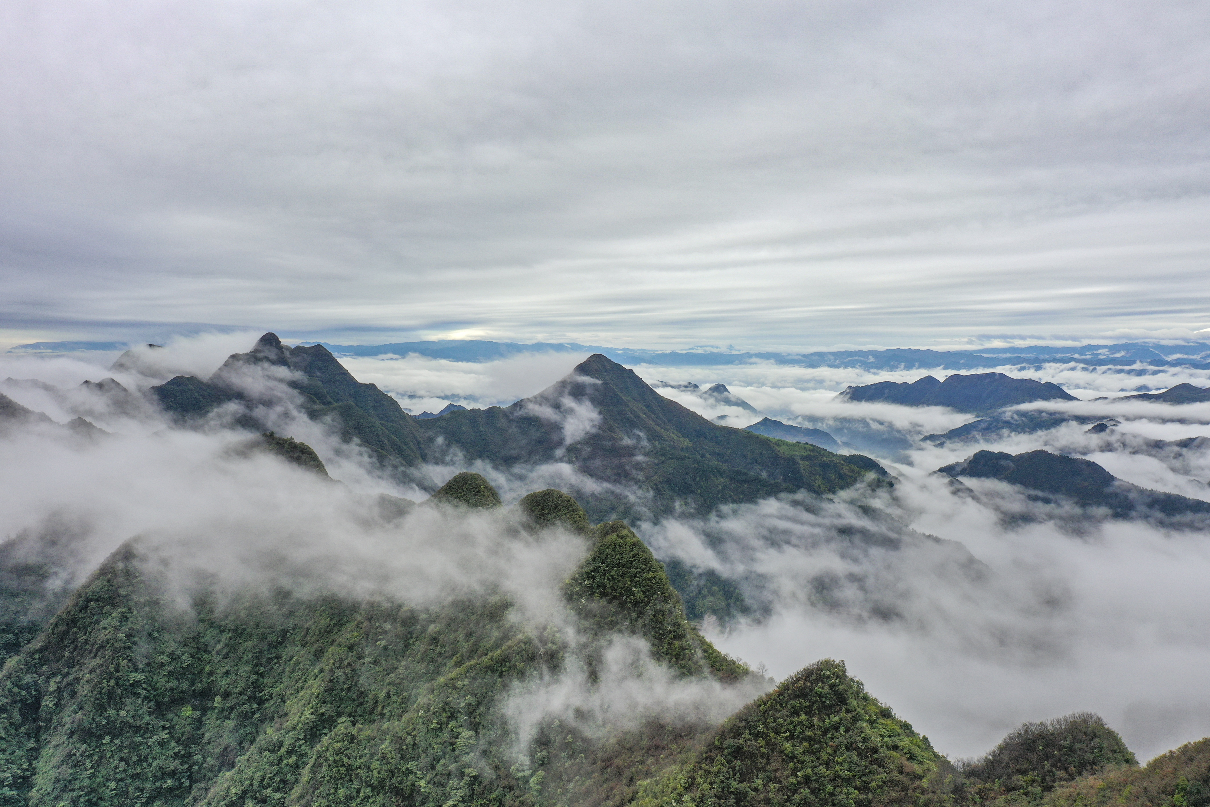 新华社照片,重庆,2022年3月25日 重庆秀山:云漫川河盖 这是3月25日拍摄的川河盖云海景观(无人机照片)。 当日,位于重庆市秀山土家族苗族自治县涌洞乡的川河盖景区出现壮美的云海景观。 新华社记者 黄伟 摄