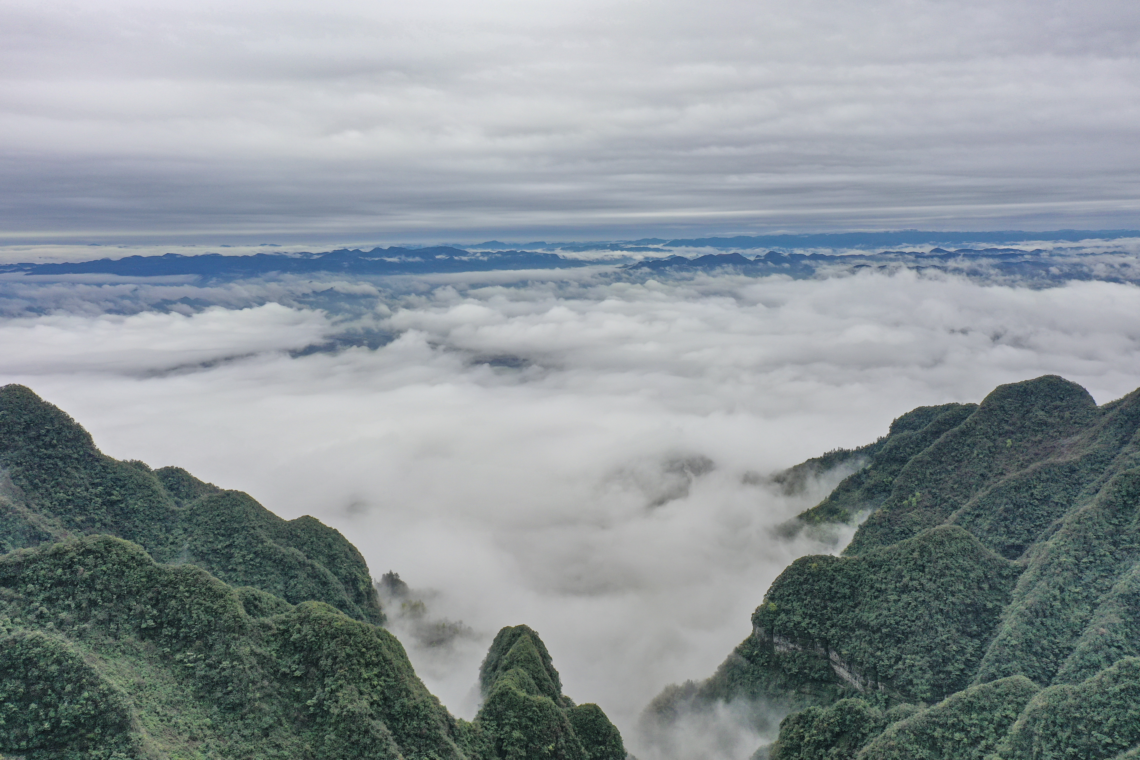 新华社照片,重庆,2022年3月25日 重庆秀山:云漫川河盖 这是3月25日拍摄的川河盖云海景观(无人机照片)。 当日,位于重庆市秀山土家族苗族自治县涌洞乡的川河盖景区出现壮美的云海景观。 新华社记者 黄伟 摄