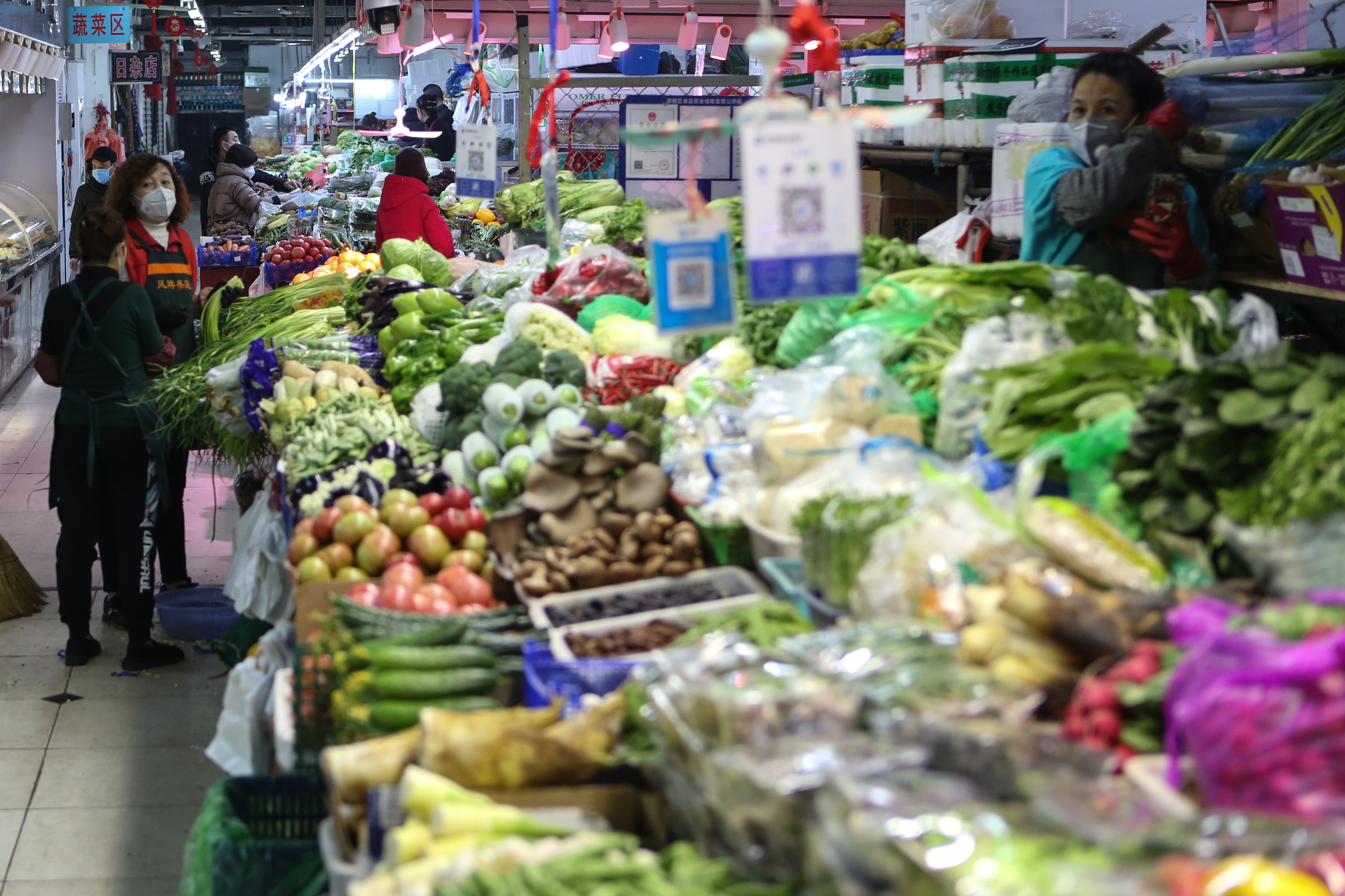 新华社照片,沈阳,2022年3月25日 沈阳全力抗疫:公交系统暂停 保障物资供应 3月25日,在沈阳市凤祥综合市场,商户在整理菜品。 为抗击本轮疫情,沈阳市新冠肺炎疫情防控指挥部决定3月24日到30日全市公交、地铁、有轨电车暂停运营,全体市民在此期间进行3轮核酸检测,全面加强社会面防控,同时加大粮食、蔬菜等农副产品供应,保障居民正常生活。 新华社记者 王乙杰 摄