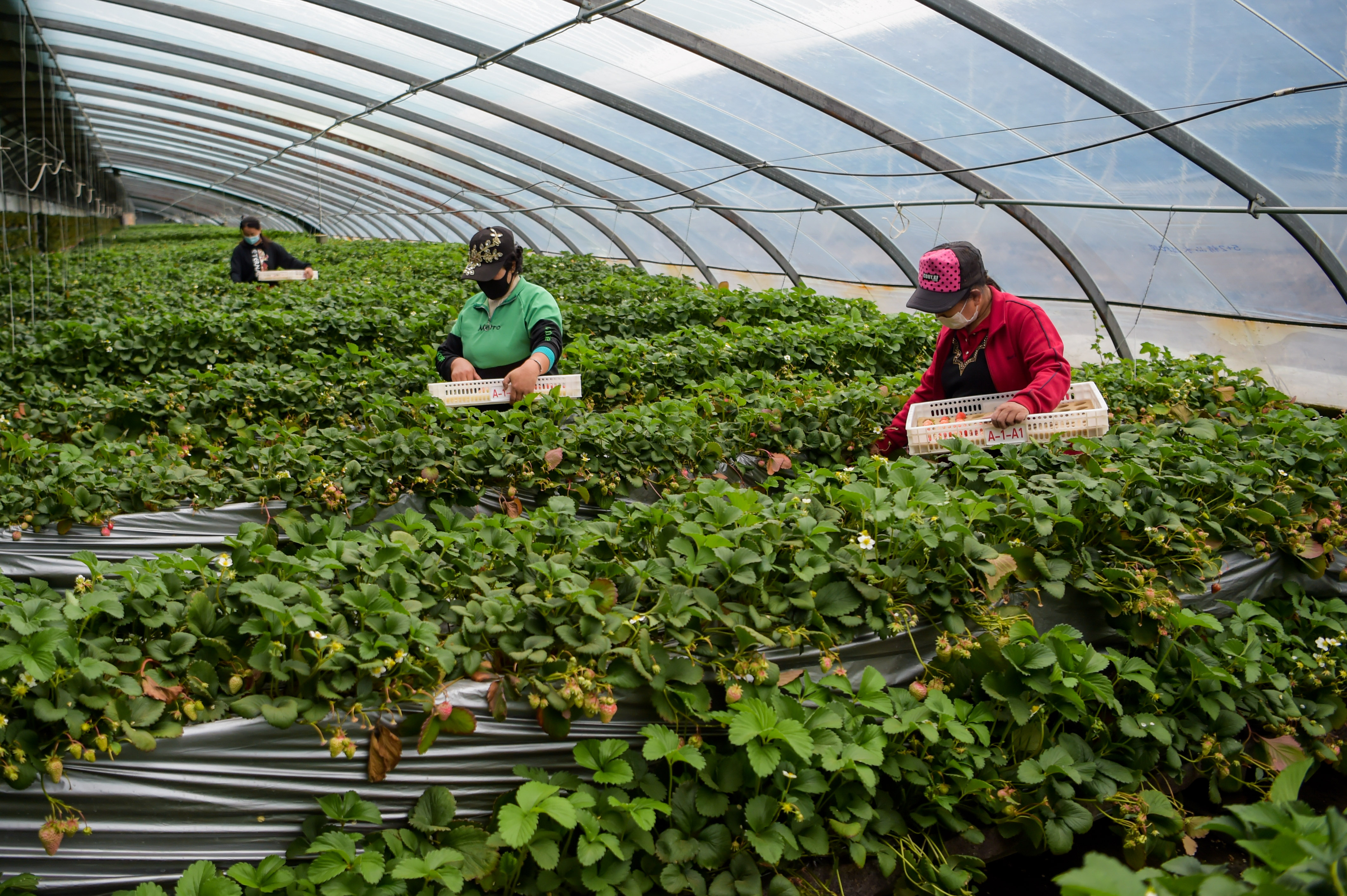 新华社照片,呼和浩特,2022年3月25日 呼和浩特:特色产业助力乡村振兴 3月25日,在位于新城区讨思浩村的百鲜现代农业园区,村民在采收草莓。 近年来,内蒙古呼和浩特市新城区积极推进设施农业现代化建设,大力发展草莓等特色产业,通过“企业+基地+农户”的产业发展模式,带动村民就业增收,助力乡村振兴。 新华社记者 李志鹏 摄
