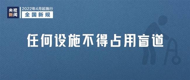 《建筑与市政工程无障碍通用规范》国家标准4月1日起实施,要求盲道铺设应避开障碍物,任何设施不得占用盲道。