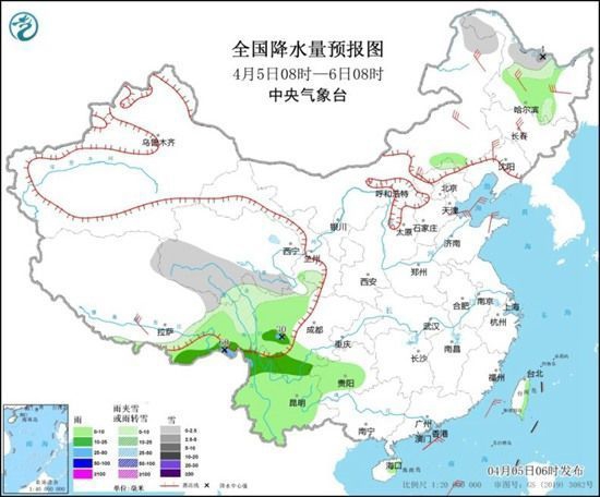昨天,一股新冷空气将“造访”,由于其路径偏东,影响区域有限,仅东北北部及内蒙古东部一带出现雨雪天气,成片的降水仍集中在西南地区,其中西藏东部、云南北部、四川南部、重庆南部等地出现中到大雨,云南怒江局地暴雨;内蒙古东部、黑龙江北部和西部等地部分地区出现降雪或雨夹雪。