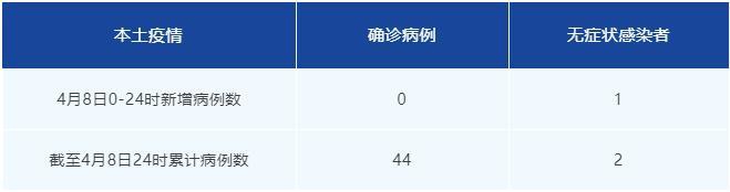 4月8日0-24时,我市无新增本土确诊病例,新增本土无症状感染者1例。截至4月8日24时,我市本轮疫情累计报告本土确诊病例44例,本土无症状感染者2例。