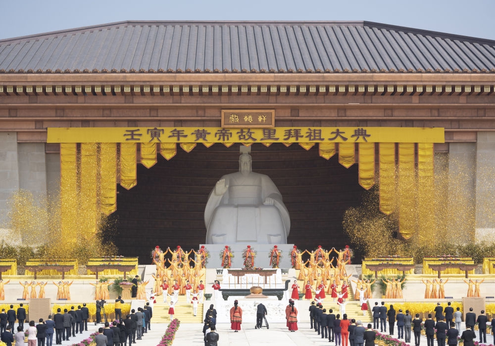 在河南新郑市举行的壬寅年黄帝故里拜祖大典现场。新华社记者 徐嘉懿 摄