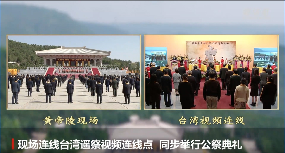 壬寅年清明公祭轩辕黄帝典礼在陕西举行,两岸同胞连线祭祖(视频截图)。