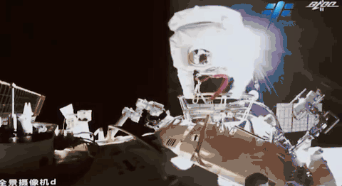 △2008年,翟志刚手持五星红旗进行太空行走。