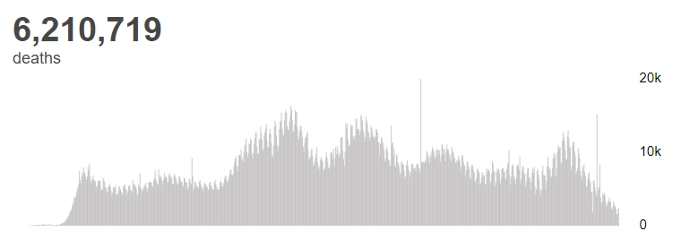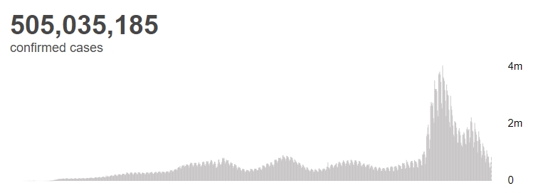 根据世卫组织最新实时统计数据,截至欧洲中部夏令时间4月21日18时19分(北京时间4月22日0时19分),全球累计新冠肺炎确诊病例505035185例,累计死亡病例6210719例。21日全球新增新冠肺炎确诊病例847595例,新增死亡病例2383例。(总台记者 朱赫)