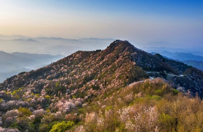 暮春时节,河南新县田铺乡的黄毛尖山上,漫山杜鹃披彩流霞,吐露芬芳。暖阳下,杜鹃花在春风中摇曳身姿,向八方来客发出邀约。