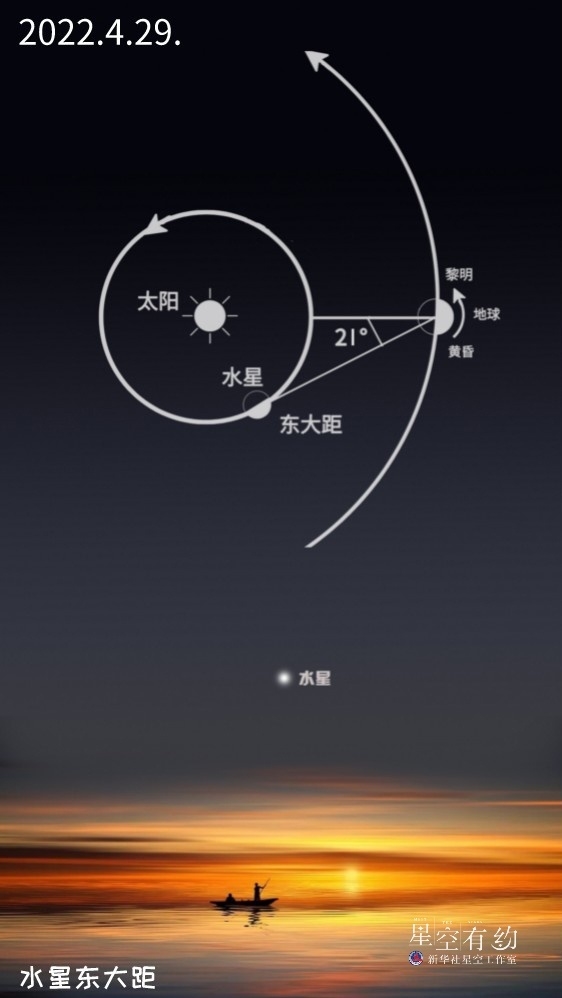 “水星与太阳的距角从不超过28度。本次东大距,水星与太阳的距角为21度,日落时地平高度约19度,亮度约0.3等。”宋媛媛说。