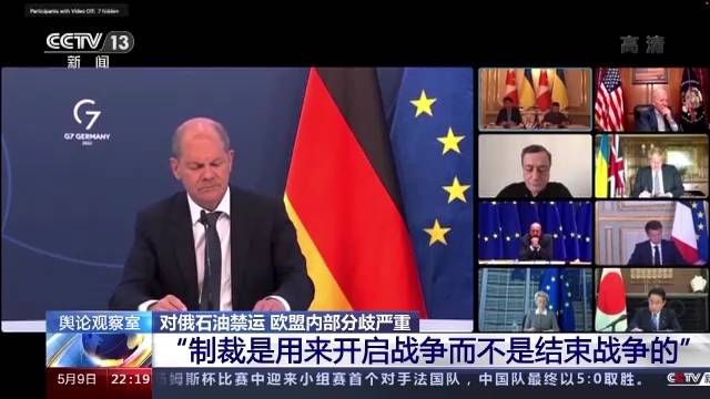 就在视频会议召开之际,欧盟也正在努力就对俄罗斯石油进口的禁令达成一致。欧盟委员会本月4日提交了第六轮对俄罗斯制裁措施提案,其中就包括今年年底前全面禁止进口俄罗斯石油。按照程序,提案须得到27个欧盟成员国一致同意才能生效。