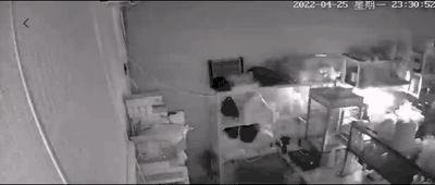 火灾调查员查看监控时发现,当天23点30分左右,位于该店铺东侧操作台上的电磁炉突然起火,并冒出火光。