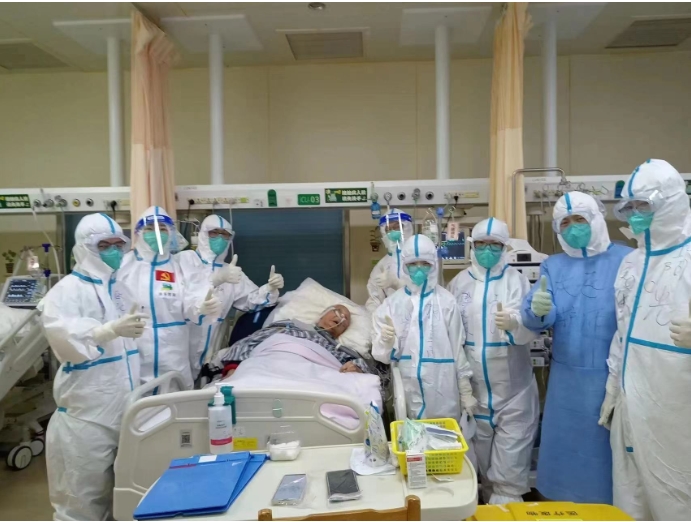 医护人员祝贺叶鸣老人核酸转阴