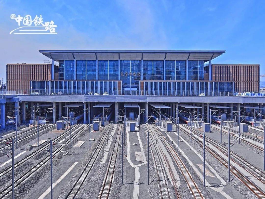 从高空俯瞰,车站整体呈独特的“中”字造型;站内装饰采用麦穗黄陶板,寓意“丰收、喜庆、辉煌”;室内装修具有鲜明的现代工业风;候车区域的藻井吊顶、钟鼓楼造型,让旅客候车时能够感受浓浓的北京文化元素……