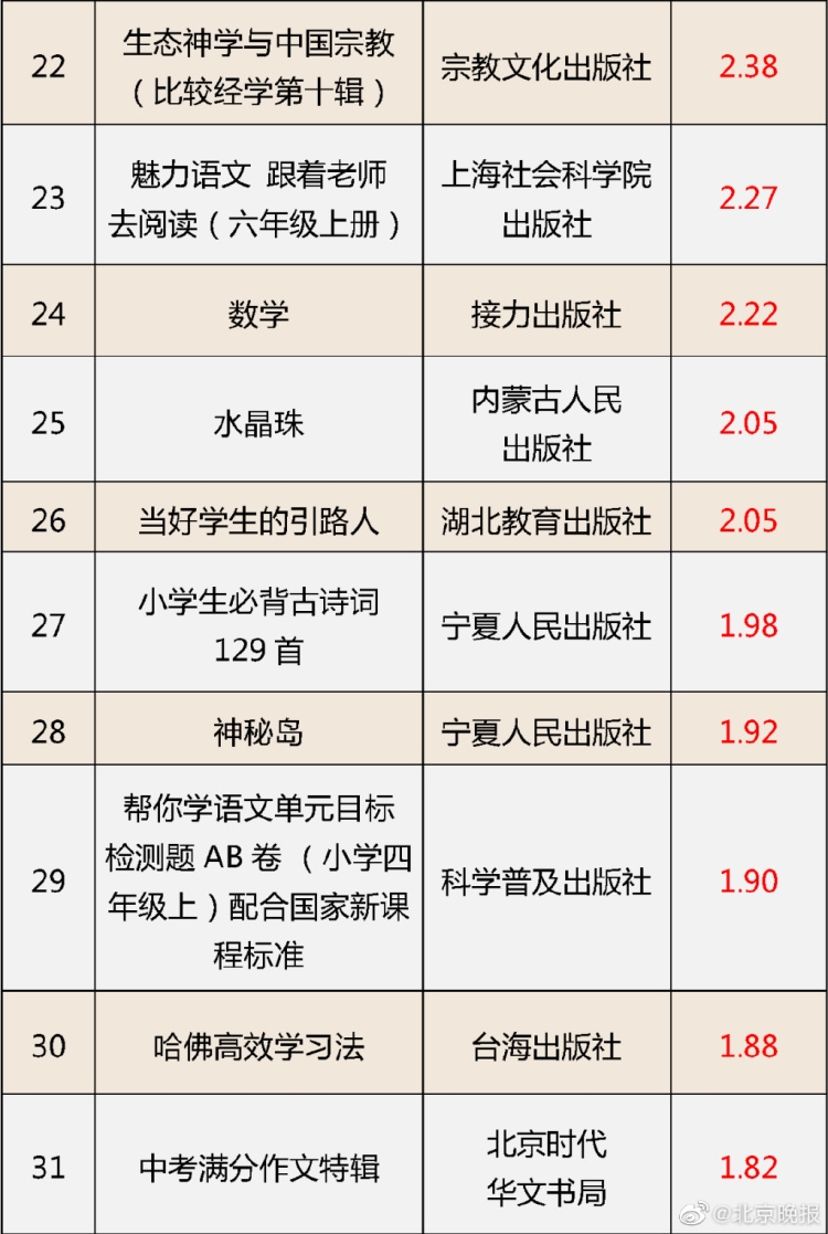 据“首都教育”公众号消息,近日,国家新闻出版署通报“质量管理2021”编校质量不合格图书名单。通过重点对2020年以来出版的少儿图书、教辅材料等进行编校质量检查审核,认定其中62种图书不合格。