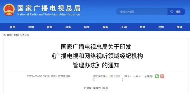 记者5月30日从国家广电总局获悉,《广播电视和网络视听领域经纪机构管理办法》于日前印发,要求广播电视和网络视听领域经纪机构、经纪人员应当严格规范信息发布,不得发布或者雇佣营销号发布引发粉丝互撕、拉踩引战等有害信息,不得以打赏排名、刷量控评、虚构事实、造谣攻击等方式进行炒作,不得以虚假消费、带头打赏、应援集资等方式诱导粉丝消费。