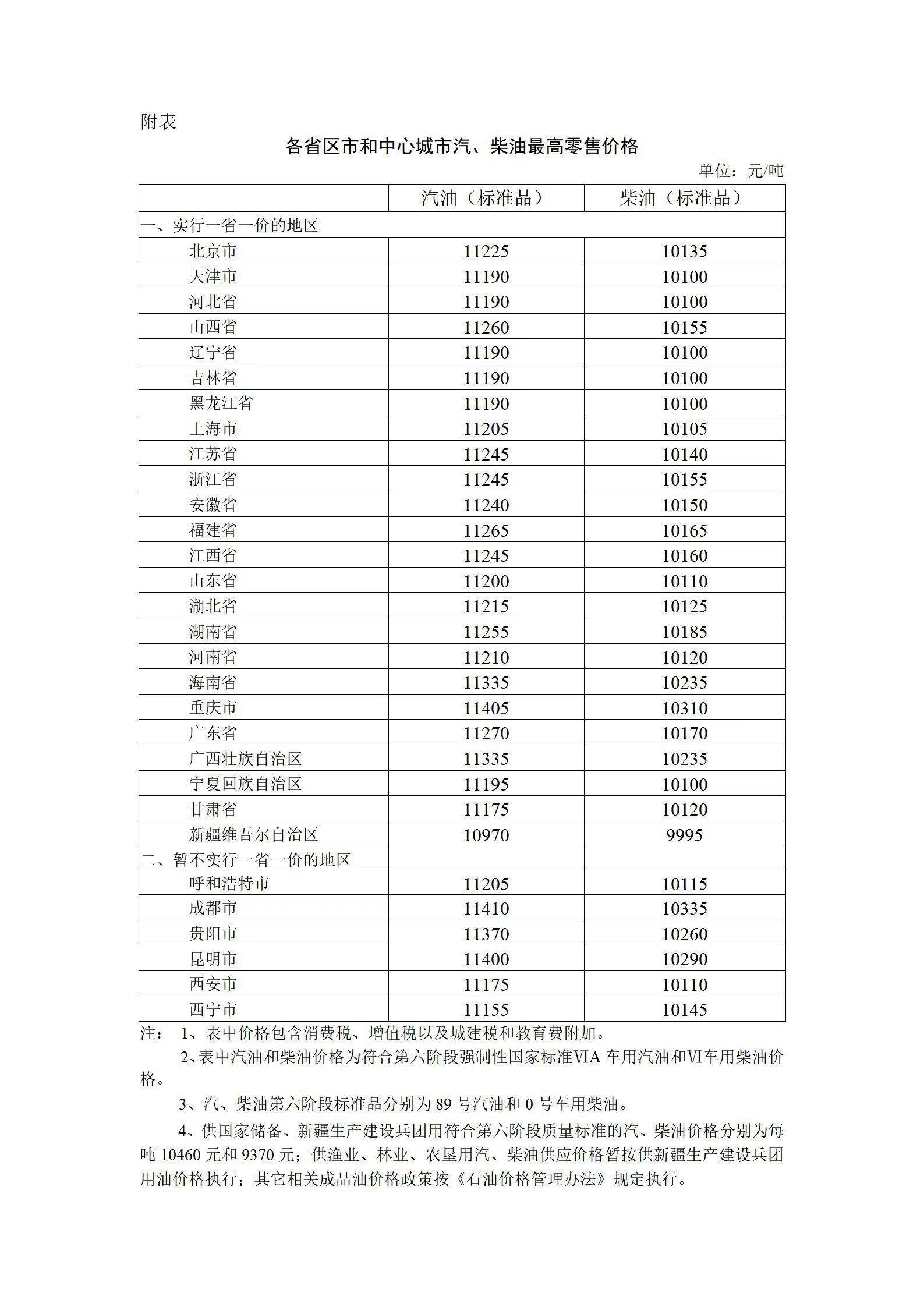 国家发展改革委消息:根据近期国际市场油价变化情况,按照现行成品油价格形成机制,自2022年5月30日24时起,国内汽、柴油价格(标准品)每吨分别提高400元和390元。调整后,各省(区、市)和中心城市汽、柴油最高零售价格见附表。相关价格联动及补贴政策按现行规定执行。