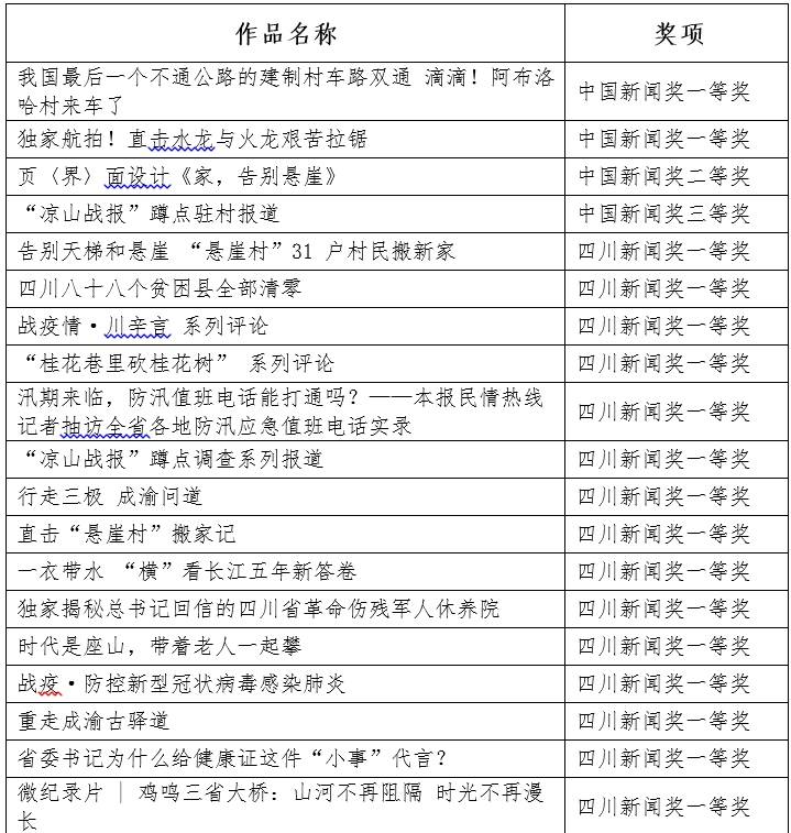 四川日报、四川在线4件作品获评中国新闻奖、89件作品获评四川新闻奖。