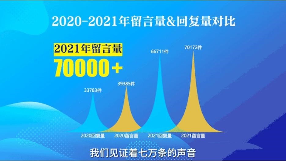 精心打造问政四川网络理政平台。截至2021年12月14日,“问政四川”全年收到网友留言70712条,66711条获得相关职能部门及时回复或解决,回复量较去年同期增长31686条,增幅达97.47%。参与问政四川网友留言回复的各级党政职能部门达6500个,较去年新增了1500余个。不仅实现21个市(州)183个县(市、区)全覆盖,省级部门账号也由去年7个增加到37个。