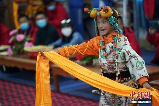 图为学生表演格萨尔史诗说唱艺术。中新社记者 苏丹 摄
