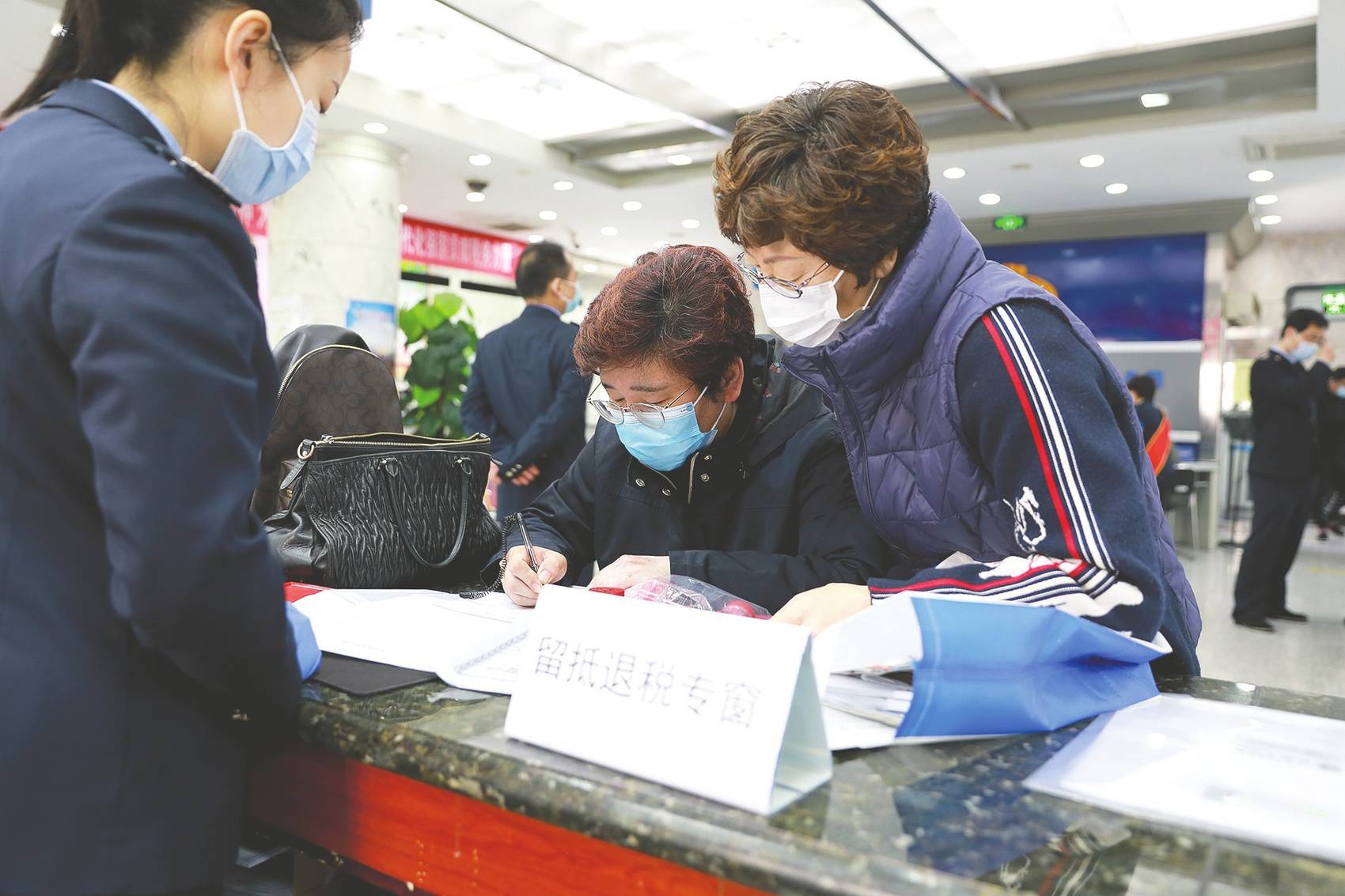 经济政策“靠前发力”。图为日前天津市和平区税务局工作人员指导纳税人进行小微企业增值税留抵退税操作 新华社图