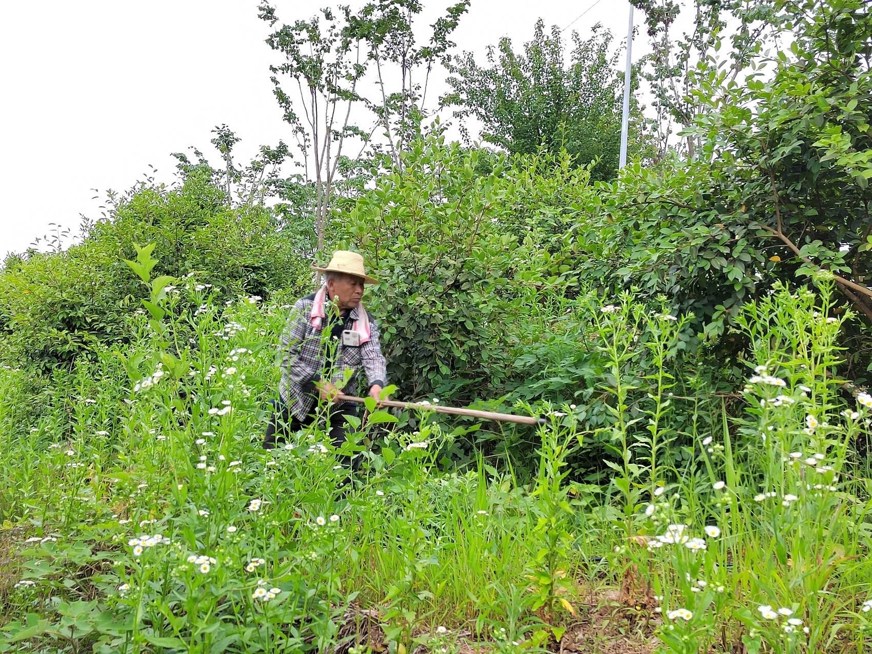 黄友德在司马光油茶园里除草。新华社记者刘金辉摄