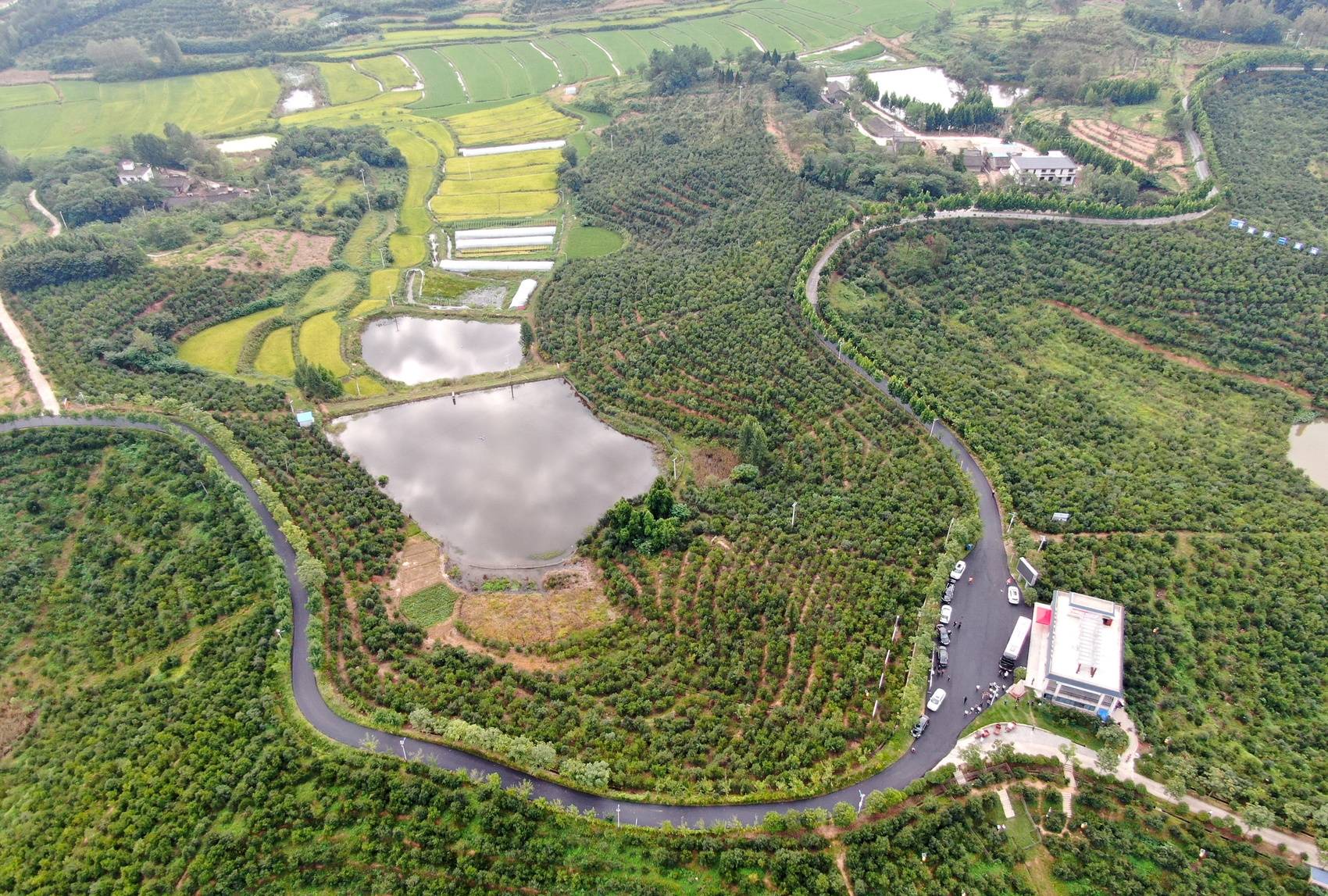 河南省信阳市光山县槐店乡司马光油茶园(无人机照片)。新华社记者郝源摄