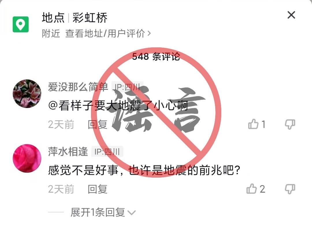 6月1日下午,四川省雅安市芦山县和宝兴县相继发生6.1级和4.5级地震,不常见的现象成了市民议论的话题。6月7日,抖音用户“西康雅州”发布了他拍摄的短视频,视频中拍摄者表示:“这种现象不正常”。视频发布后,引起了大量网友浏览,不少网友留言:“地震的前兆,真的”,“是不是地震震出来的”,“大地震要来了”,“看样子要大地震了小心啊”等言论。