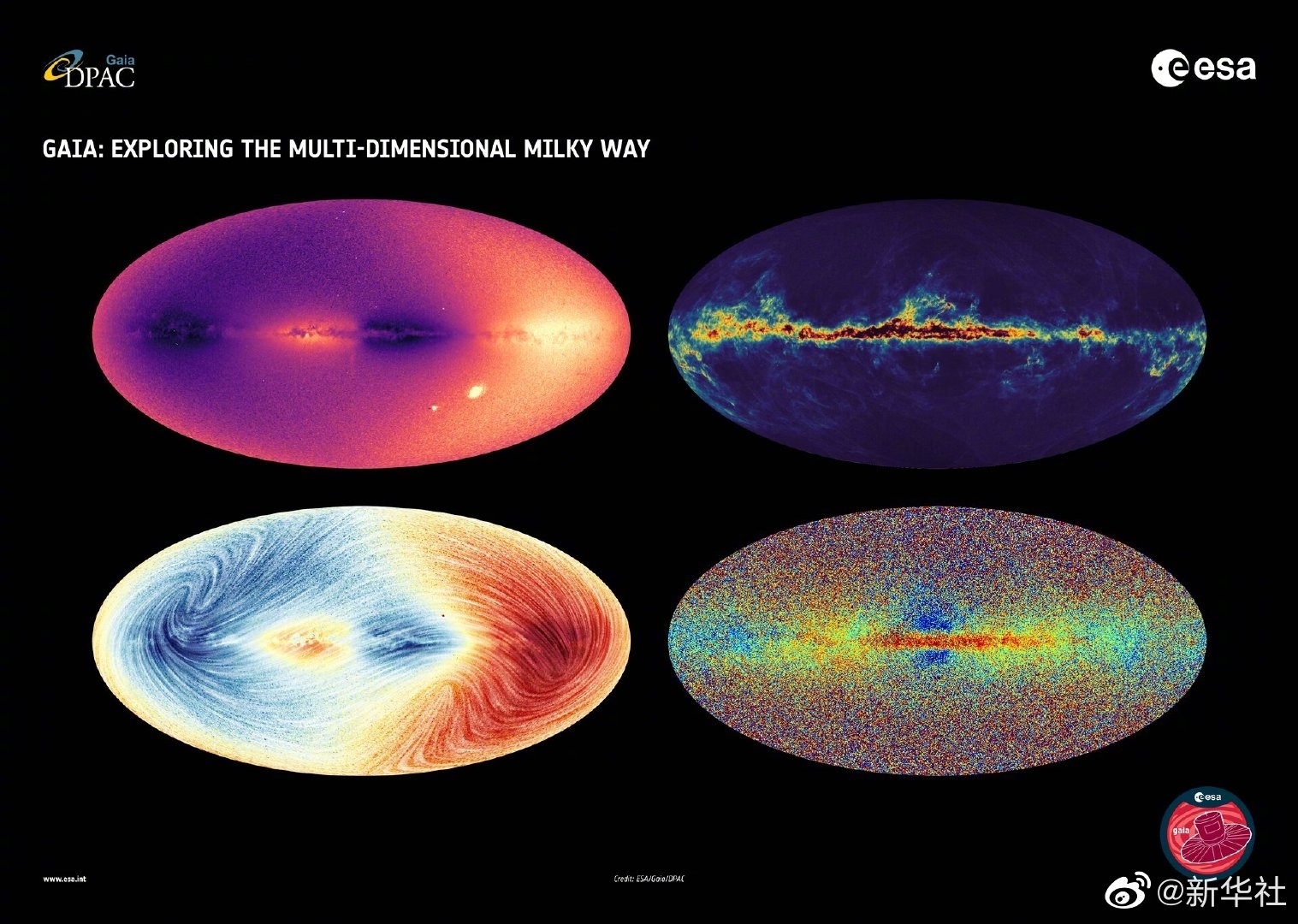 欧航局新闻公报说,此次发布的数据涵盖了“盖亚”收集的约20亿颗恒星的最新数据,包括其化学成分、温度、颜色、质量、年龄,以及径向速度,即恒星接近或远离我们的速度。