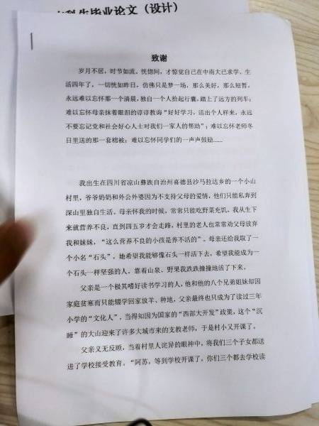 今年8月,将与苏正民一起前往凉山支教的严宇飞看了苏正民的毕业论文致谢后说:“我曾问苏大哥,毕业后为何一定要回大凉山。读完致谢全文,我理解了他的执着。”